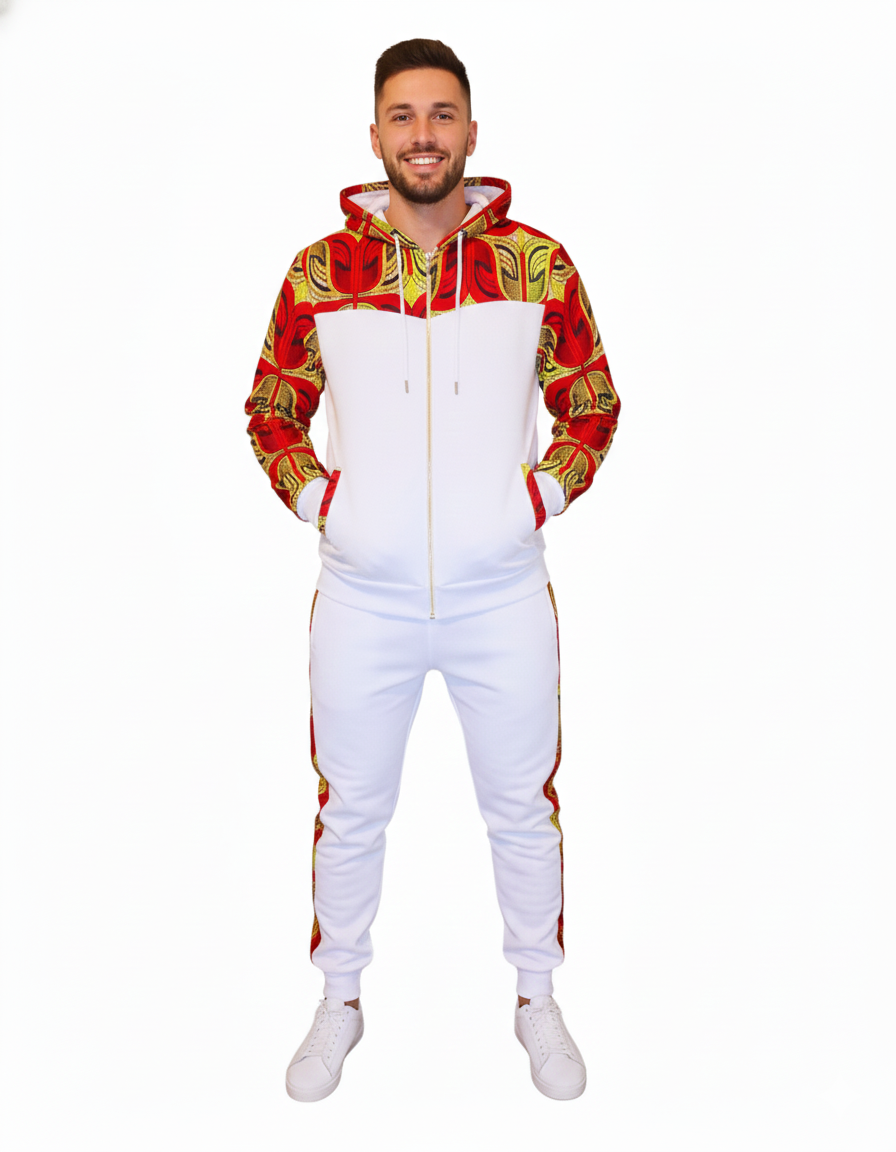 The Red African Print- White Tracksuit